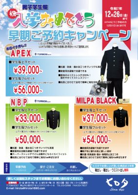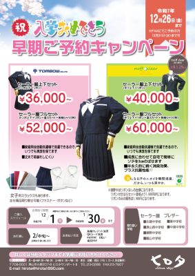入学おめでとう 早期ご予約キャンペーン 学生服